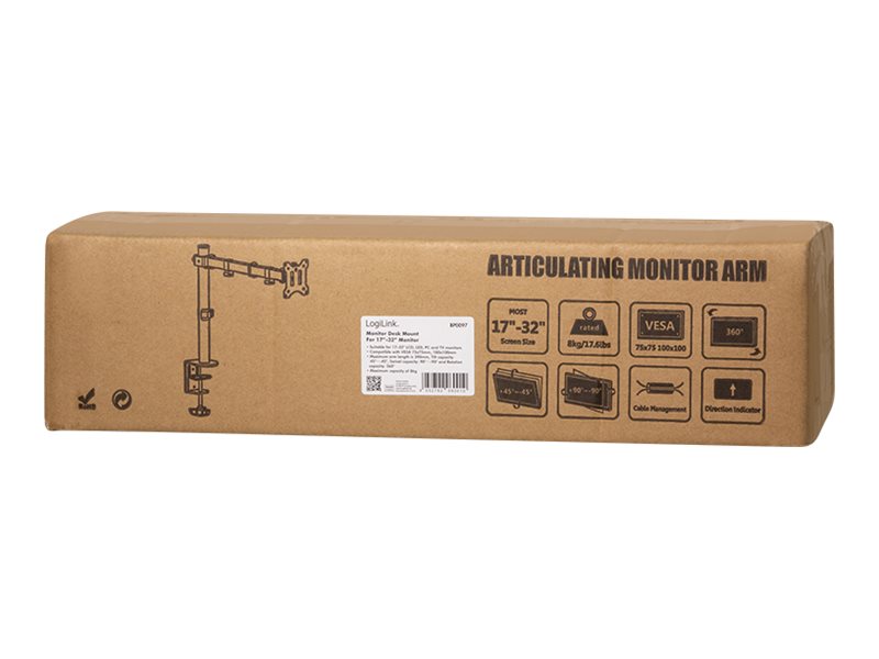 LogiLink – Monteringssæt – justerbar arm – for LCD display – sort – skærmstørrelse: 17″-32″ – skrivebordsmonterbar